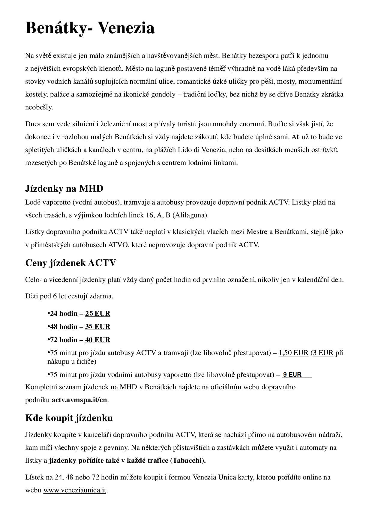 Doporučujeme si email i přílohu k emailu Benátky informace, kterou jsme pro Vás vytvořili vytisknout a vzít si s sebou!!!